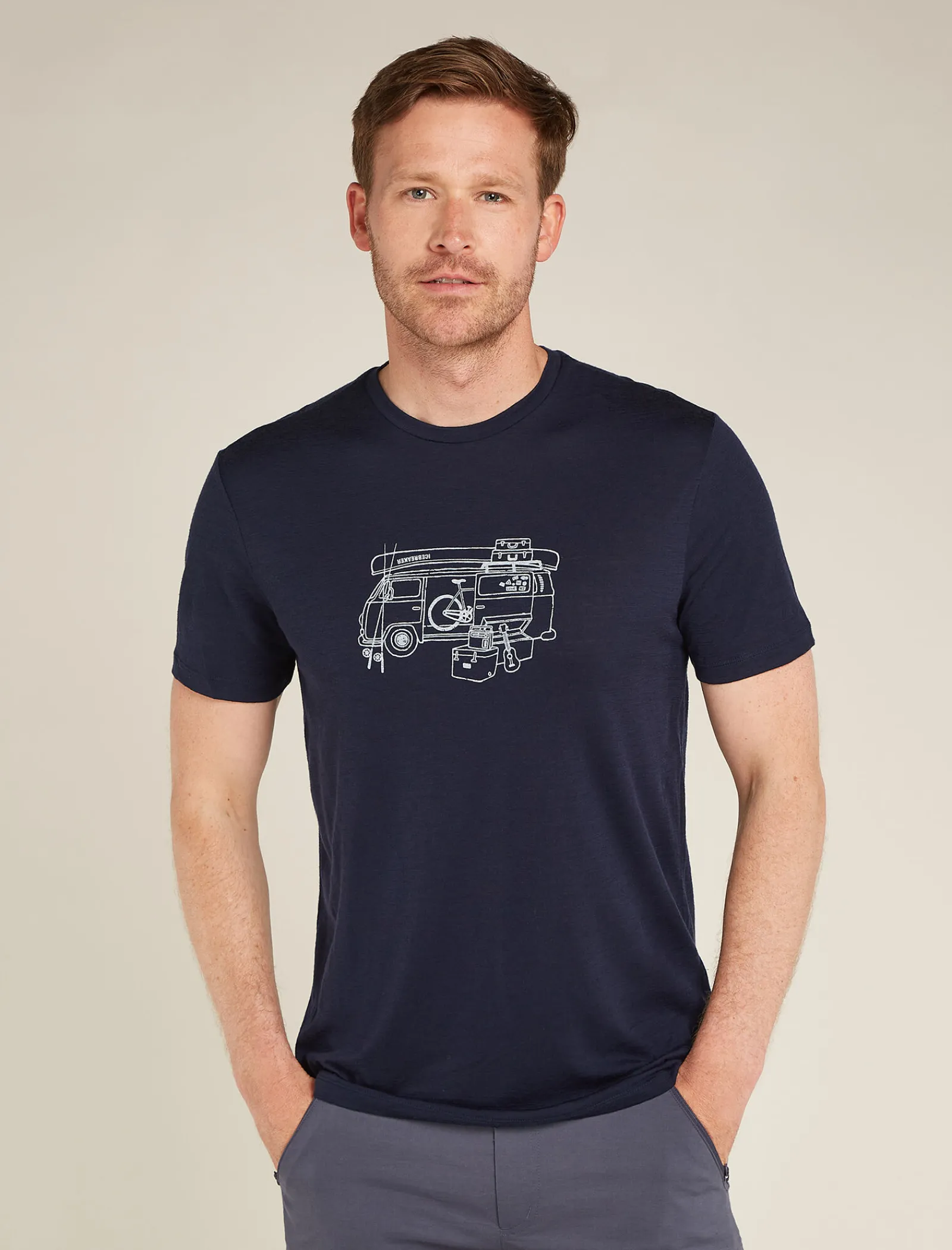 Icebreaker Men’s Merino 150 Tech Lite Short Sleeve T-Shirt Van Life MidnightNavy Fashion