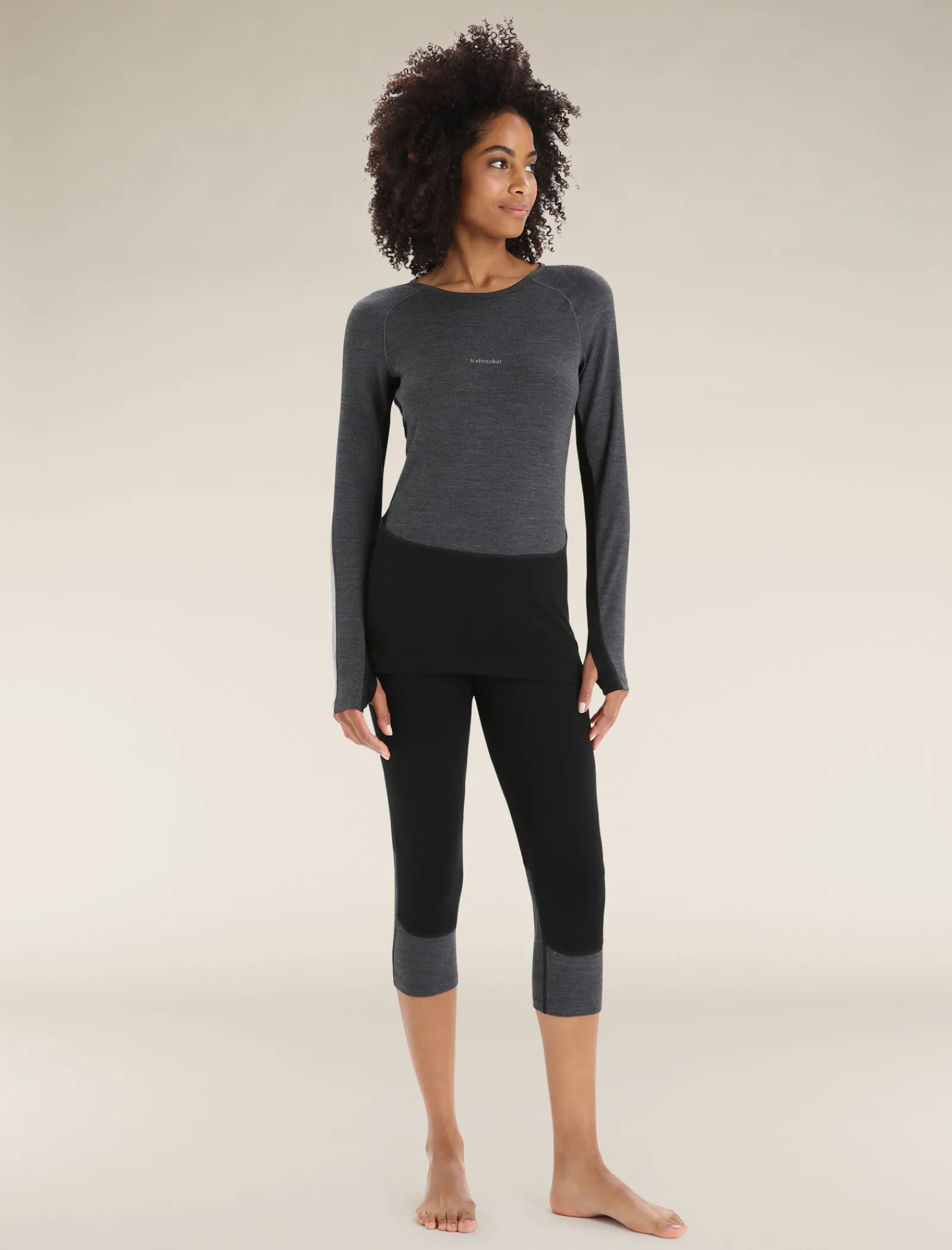 Icebreaker Women’s 260 ZoneKnit™ Long Sleeve Crewe Thermal Top JetHeather/Black Best Sale