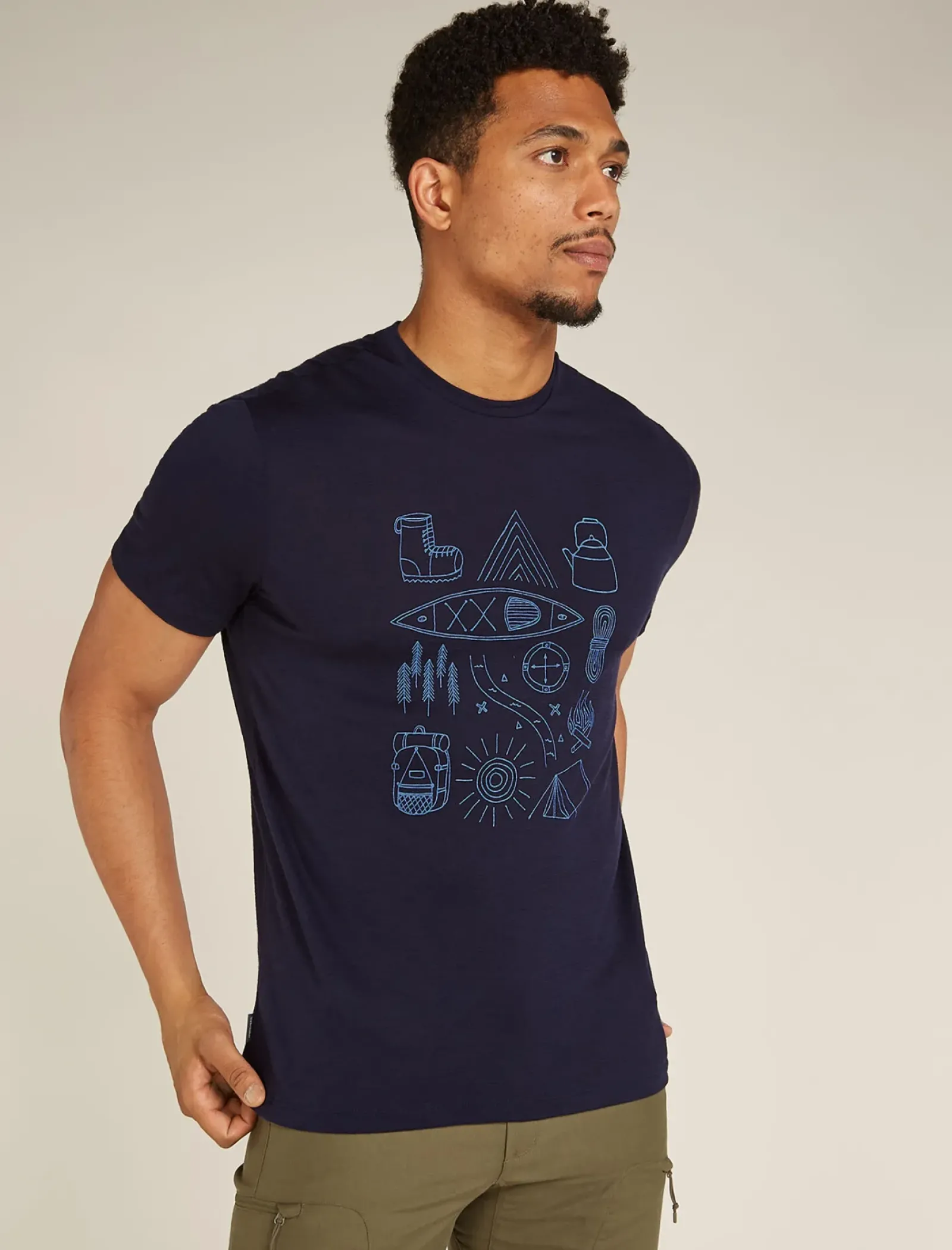 Our most versatile tech tee that provides comfort, breathability and odour-resistance for four seasons worth of adventure, the Merino 150 Tech Lite Short Sleeve Tee Camp Essentials features 100% merino for all-natural performance. The original artwork features a fun illustration of the essential components of a good outdoor adventure.